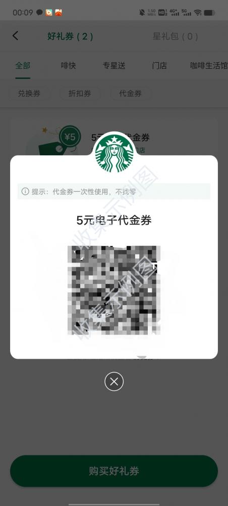 收所有渠道获取5元星巴克代金券有效券
