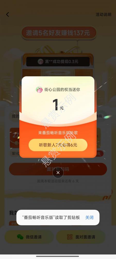 打开番茄畅听音乐版,然后登录后,点“领现金”,往下滑,看到立即邀请,点进去,找到填邀请码的地方,填写下方邀请码,没有找到立即邀请的话,微信重新扫上面的二维码,会自动跳转填写邀请码界面