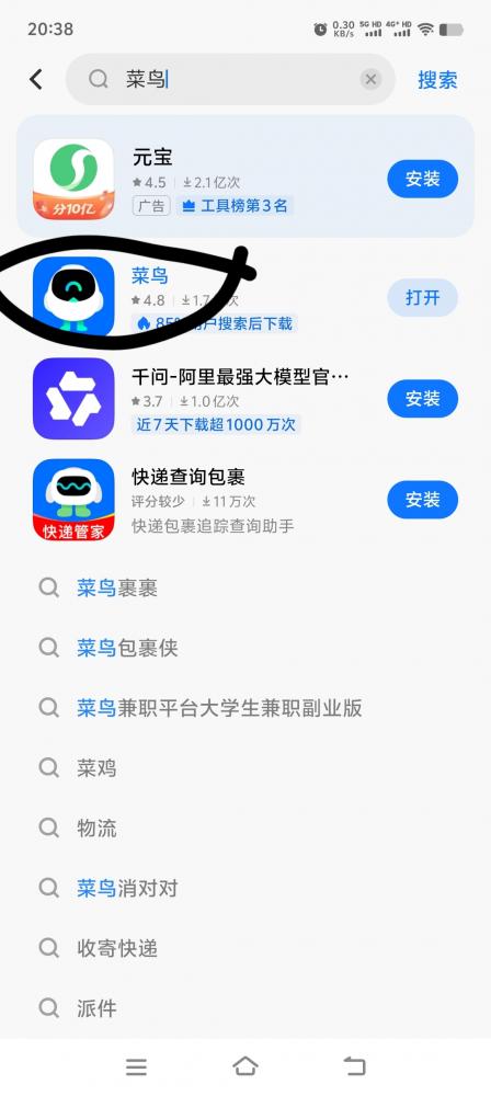自己应用商店下载菜鸟