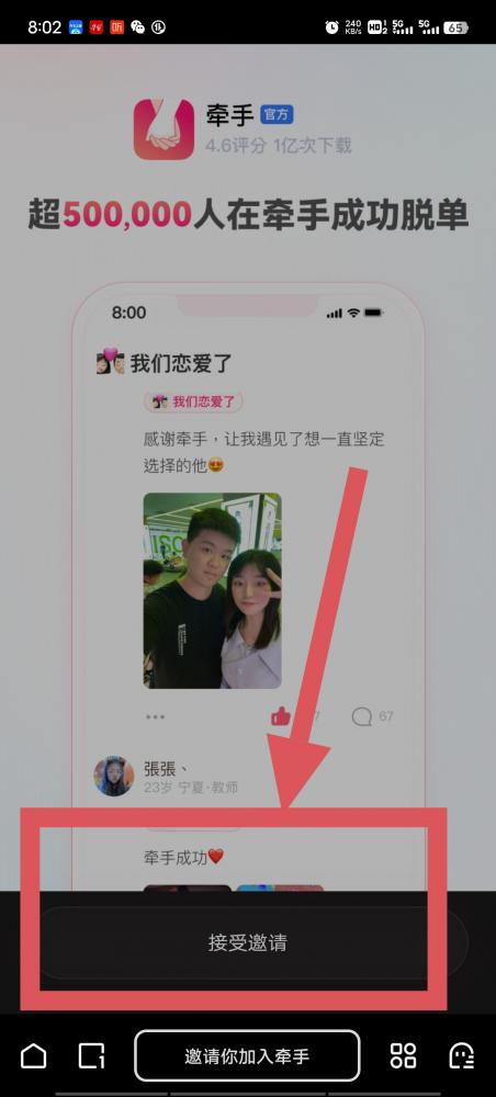 注册中途不能切屏和退出!否则无数据。必须是牵手APP新用户才行,没下载过没登录过,官方浏览器打开链接。(实名人脸认证必须一次性通过,中途不能切屏退出),
